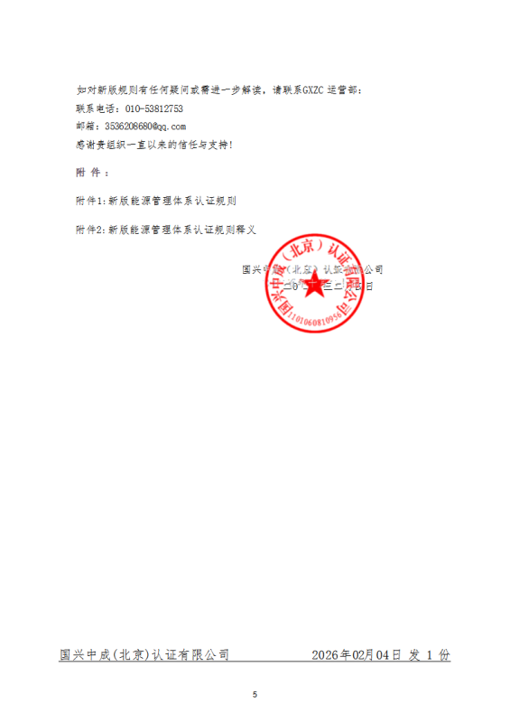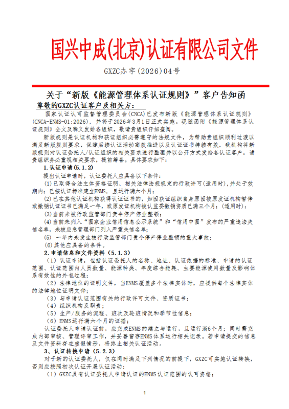 关于“新版《能源安全管理体系认证规则》”客户告知函